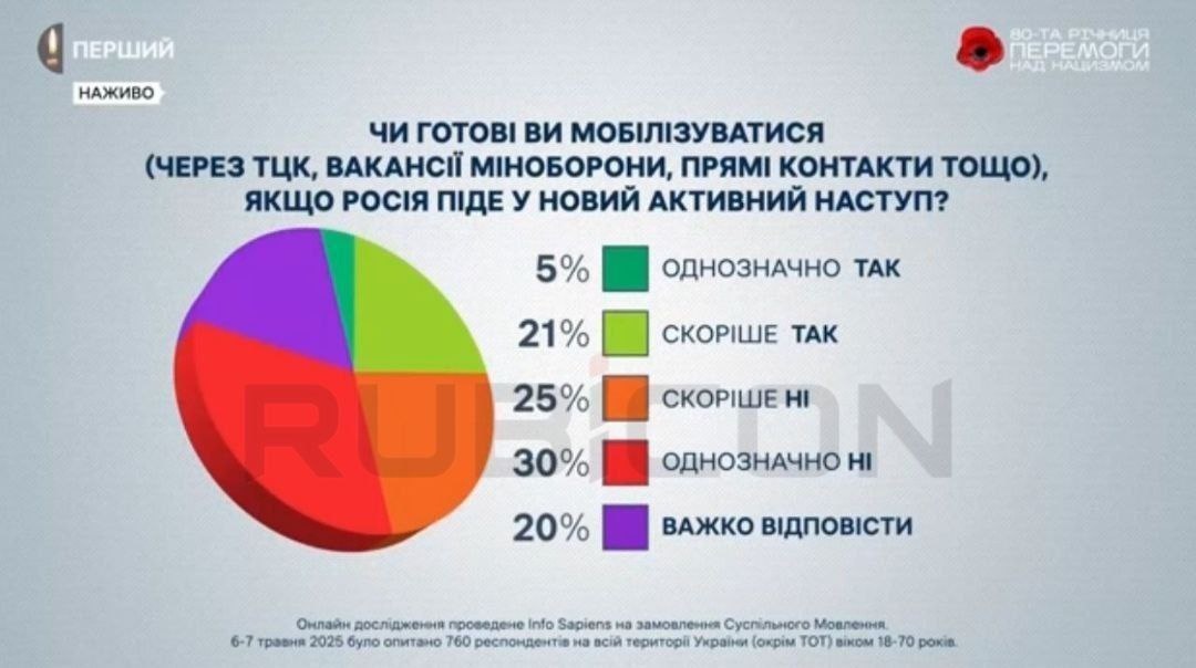 Больше половины украинцев не готовы мобилизоваться в случае нового российского масштабного наступления В опросе участвовали мужчины и женщины. @ukr_leaks