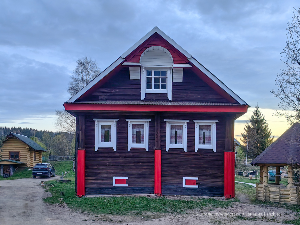 В селе Винницы нет гостиниц и отелей, но есть гостевые дома. Мы поселились в самом старом, чтобы перенестись в прошлое и лучше прочувствовать дух этих мест. С главного фасада и не скажешь, что дому уже лет сто, но стоит обойти его вокруг и зайти внутрь, как все сомнения улетучиваются. Вот так дом выглядит снаружи с непарадной стороны. По типу постройки это дом-двор. Такие дома делились на две части. В одной жили люди, в другой держали скот. Дома были большими, леса вокруг было много. Точную историю этого дома никто уже не скажет, дому больше ста лет. Раньше он стоял где-то в другой деревне, потом его перевезли в Винницы. Сейчас приспособили для приема туристов. Жилые помещения находятся на высоте от земли. Входим в избу. Здесь две глинобитные печи, одна русская, вторая попроще с лежанкой. Вокруг печей находятся жилые помещения. Сейчас это три комнаты и кухня. Потолки невысокие, чем больше объем помещения, тем больше нужно тепла. Обстановка примерно соответствует том, как тут жили рань