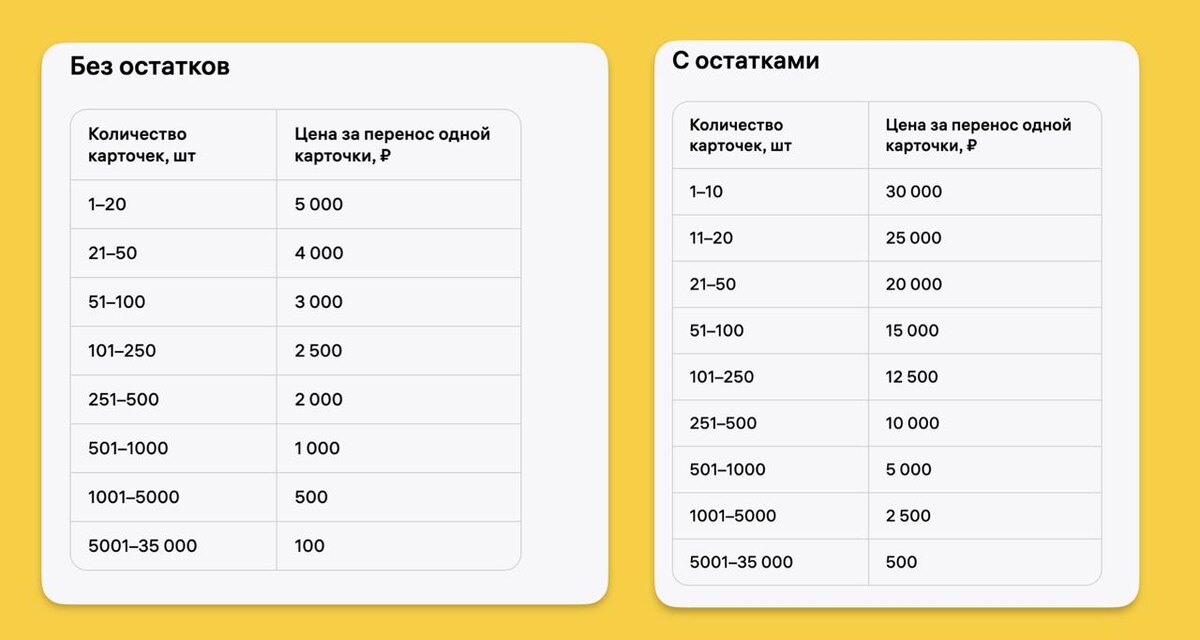 ↗️ Стоимость переноса карточек с остатками и без.