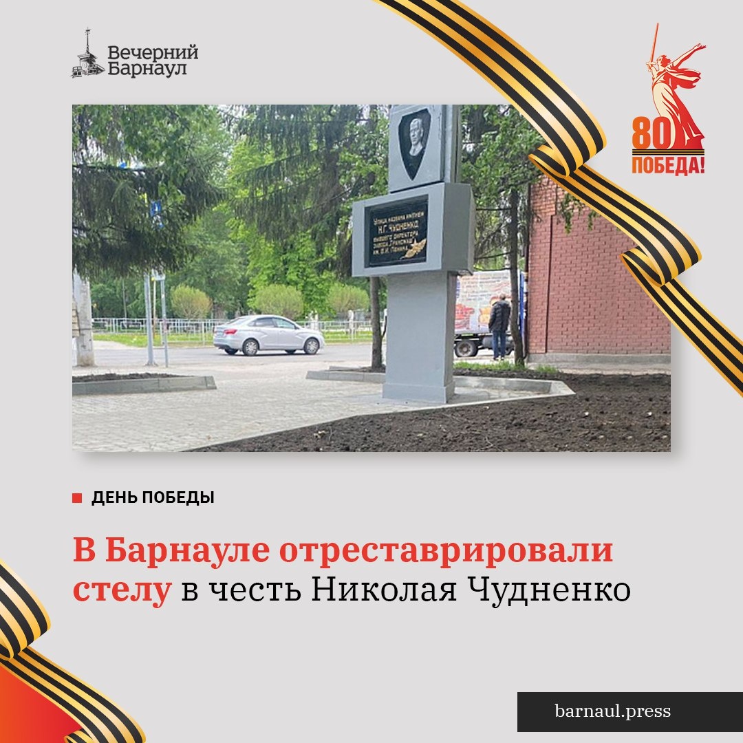Так, шефство над стелой в честь названия улицы именем Николая Чудненко взяло на себя ОАО «Барнаултрансмаш». Работники предприятия очистили барельеф от коррозии, заменили повреждённые металлические листы на постаменте и провели реставрацию.