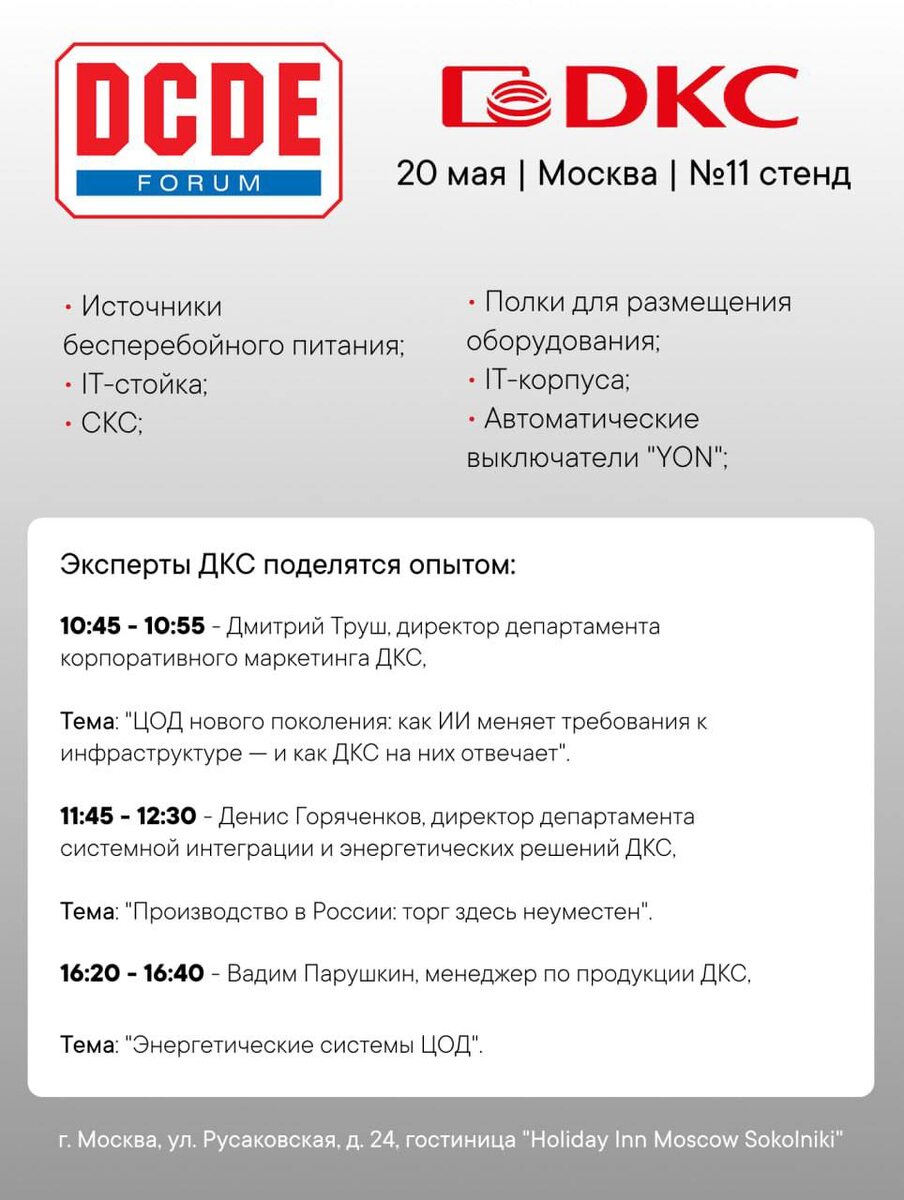🗣Уже сегодня мы делимся опытом на конференции Data Center Design & Engineering (DCDE)