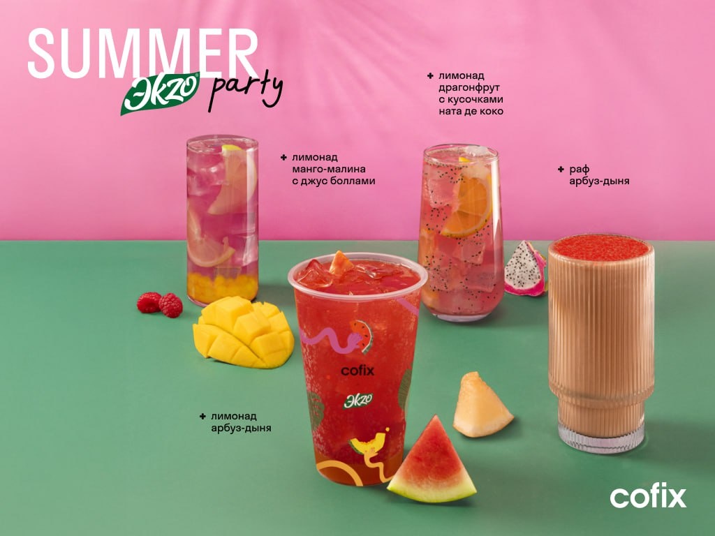 Бренд мороженого Эkzo и международная сеть кофеен Cofix объединились, чтобы подарить незабываемые летние впечатления в рамках яркой коллаборации SummerЭkzoparty. С начала мая и до конца августа в меню Cofix появятся шесть освежающих напитков, вдохновленных культовыми вкусами фруктового мороженого Эkzo. 15 мая в Москве «Арнест ЮниРусь» и Cofix представили совместный проект, призванный раскрасить жаркие летние дни яркими красками. Черпая вдохновение во вкусах эскимо Эkzo «Арбуз-дыня», «Драгонфрут», «Манго-малина» и «Магно-маракуйя», бариста Cofix создали шесть неповторимых напитков, которые станут идеальным дополнением к летнему меню. Анастасия Шатрова, менеджер по бренд-коммуникациям Эkzo, отмечает: «Мы рады сотрудничеству с Cofix и возможности подарить стране заряд свежести. Наши общие взгляды на оригинальные вкусы и позитивное летнее настроение нашли отражение в этой коллаборации. Cofix помог воплотить в жизнь не только классические лимонады, но и такие необычные варианты, как раф и