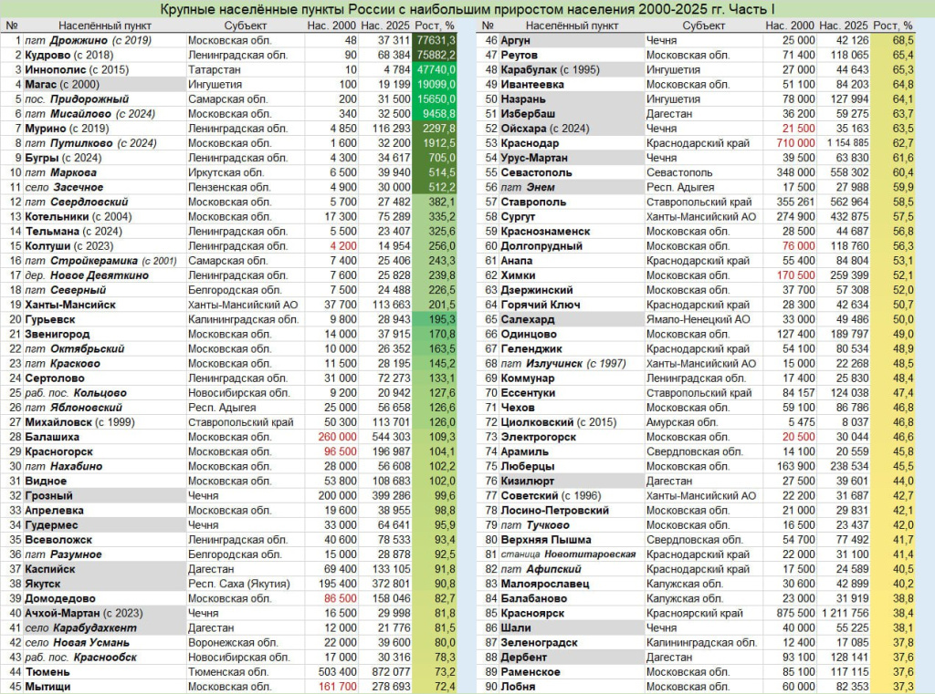 Ардон стал единственным населённым пунктом Северной Осетии, попавшим в список 170 крупнейших городов России, где зафиксирован наибольший прирост населения за период 2000–2025 годов. За 25 лет численность населения Ардона выросла на 15,6% — с 16,4 тыс. до почти 19 тыс. человек. В рейтинге он занимает 155-е место. В исследовании учитывались административно-территориальные изменения, включая перерасчёт населённых пунктов с учётом новых границ. Комментарий редакции: Рост Ардона — факт, который говорит сам за себя. Город прирастает, развивается, тянет людей. Это радует. Но в то же время бросается в глаза, что в рейтинге нет Владикавказа. И вот это уже наводит на грустные мысли — особенно если учесть, что именно столица обычно служит точкой притяжения.