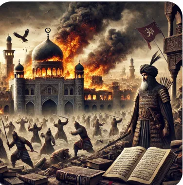 Это было холодное утро 1258 года. Багдад, расположенный на берегу реки Тигр, находился на вершине своего интеллектуального, культурного и торгового расцвета. Его улицы были наполнены учёными, мыслителями и торговцами. Это был тот самый Багдад, который аббасидские халифы превратили в колыбель знаний и мудрости. В Доме мудрости (Байт аль-Хикма) хранились одни из самых редких книг в мире, а багдадские учёные вносили новаторский вклад в области науки, медицины и философии. Но это величие не могло длиться вечно. В 1258 году один из самых беспощадных завоевателей в истории, Хулагу-хан, нацелился на Багдад. Хулагу, внук Чингисхана, командовал монгольскими войсками, которые одну за другой разрушали исламские царства. Ослабленный Халифат оказался перед лицом катастрофы. В то время Багдадом правил слабый и неспособный правитель — халиф аль-Муста‘сим. Когда Хулагу начал готовиться к нападению, халиф не осознал всей серьёзности ситуации. Вместо того чтобы принимать меры, он полагался на сомнительн