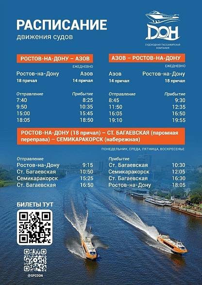 С 1 июня вступают в силу изменения в расписании движения речных пассажирских судов проекта «Валдай». Об этом информирует пресс-служба судоходной компании «Дон». В расписание будут добавлены два новых рейса по маршруту «Ростов-на-Дону – Азов». Отправление из Ростова-на-Дону будет осуществляться в 07:40 и 18:05, прибытие в Азов запланировано на 08:30 и 19:05 соответственно. В обратном направлении, из Азова в Ростов-на-Дону, суда будут отправляться в 08:45 и 19:10, прибытие в столицу Дона ожидается в 09:35 и 20:10. Кроме того, компания сообщает об увеличении времени стоянки в порту Семикаракорск до 3 часов 20 минут. Фото: СПК «Дон»