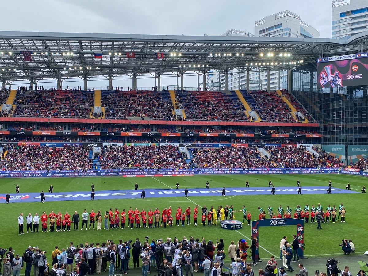 Игроки ЦСКА появлялись на поле под громкие овации. На протяжении всего матча трибуны не утихали. Кричалки про победу в Кубке УЕФА, персональные для Чиди Одиа и Кирилла Набабкина. Без «атомной бомбы» с фанатки, разумеется, не обошлось.