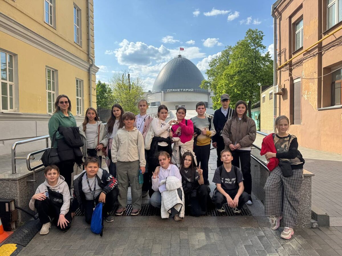 Наши пятиклассники стали чуточку ближе к звездам✨ 🌍Ученики 5«А» и 5«Б» классов совершили увлекательное путешествие в мир космоса, посетив Московский Планетарий, а именно его знаменитую Уранию, интерактивный Лунариум и, конечно же, впечатляющий Большой Звездный зал. 🪐Ребята увидели макеты планет, строение Солнечной системы, проследили за увлекательной историей освоения космоса и даже подержали в руках настоящий метеорит! Лунариум – прекрасная возможность прикоснуться к науке и понять сложные концепции через игру. Большой Звездный зал открыл для нас завораживающую красоту космоса. 🗣️«Мы посмотрели фильм "Планеты солнечной системы". Изображение в фильме было настолько реалистичным, что создавалось ощущение полета сквозь звезды и галактики. Рассказчик объяснял сложные астрономические явления простым и понятным языком, что было очень полезно для понимания материала. Сам купол Большого Звездного зала поражает своими размерами. Экскурсия в Московский Планетарий оставила самые положите