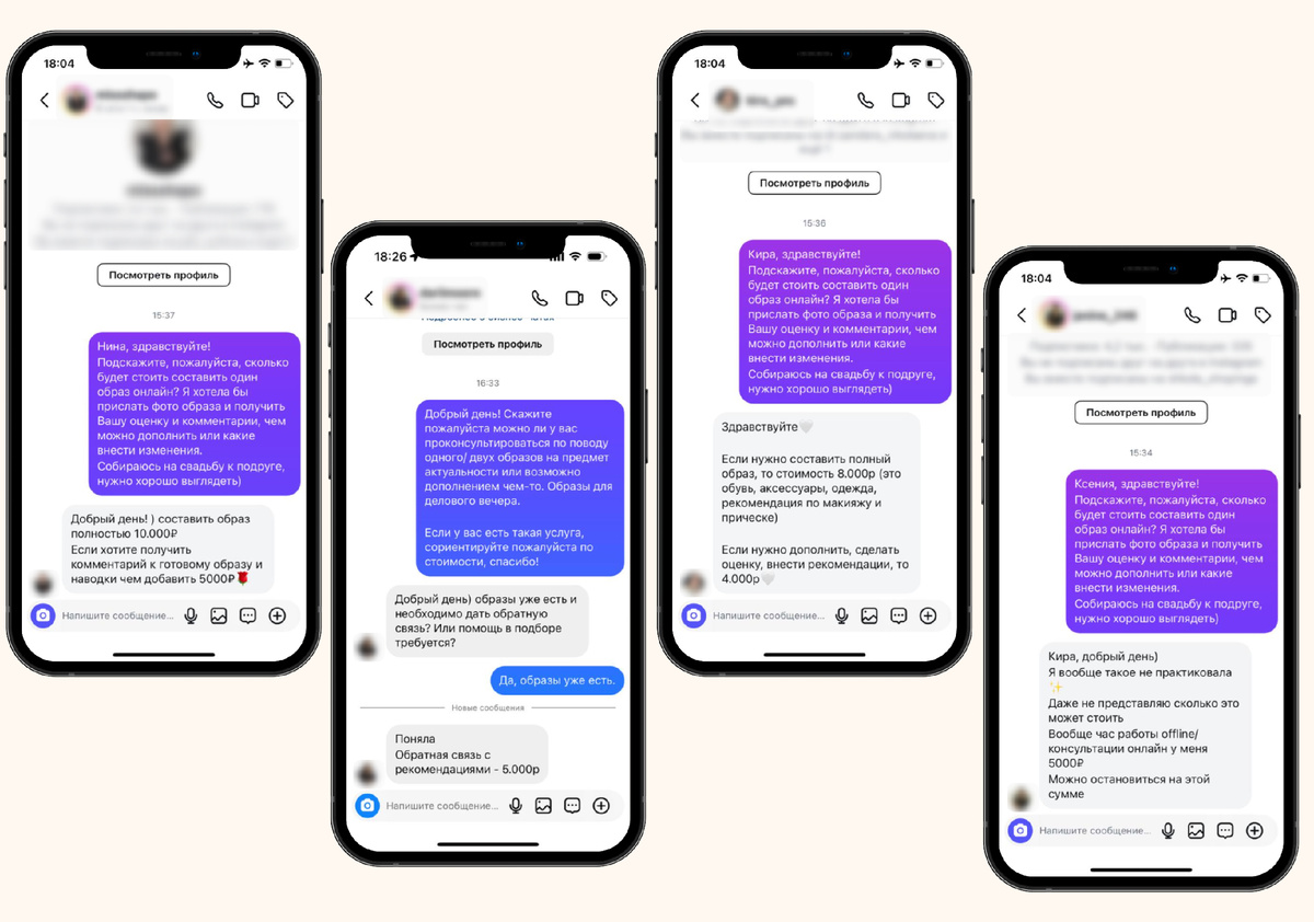 На скринах — реальные переписки со стилистами. И это цены региональных специалистов!