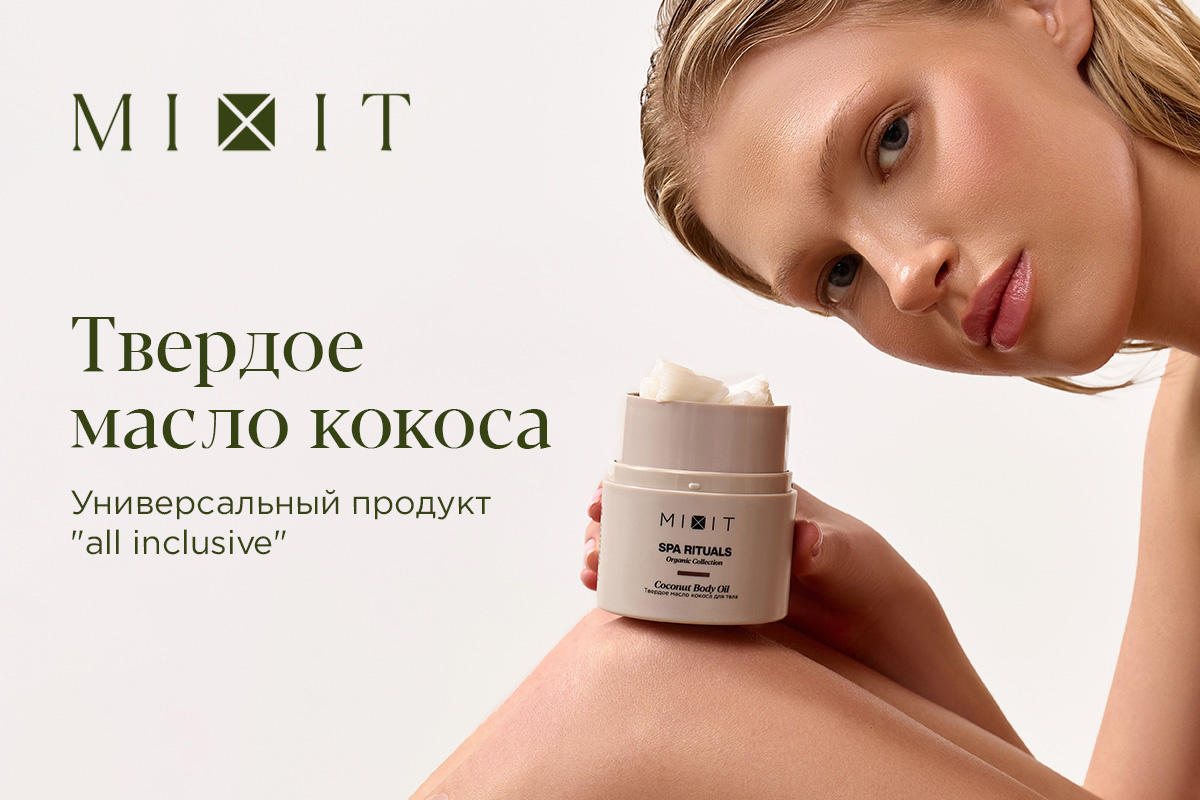 Любое твердое масло для тела, кокоса в первую очередь, хорошо работает на мокрой коже. Оно имеет окклюзивные свойства и буквально запечатывает влагу, избавляя от сухости и ощущения стянутости. После душа промокните кожу полотенцем и нанесите твердое масло кокоса MIXIT Spa Rituals, смешивая его с оставшимися каплями воды. Это поможет сохранить максимальное количество влаги.