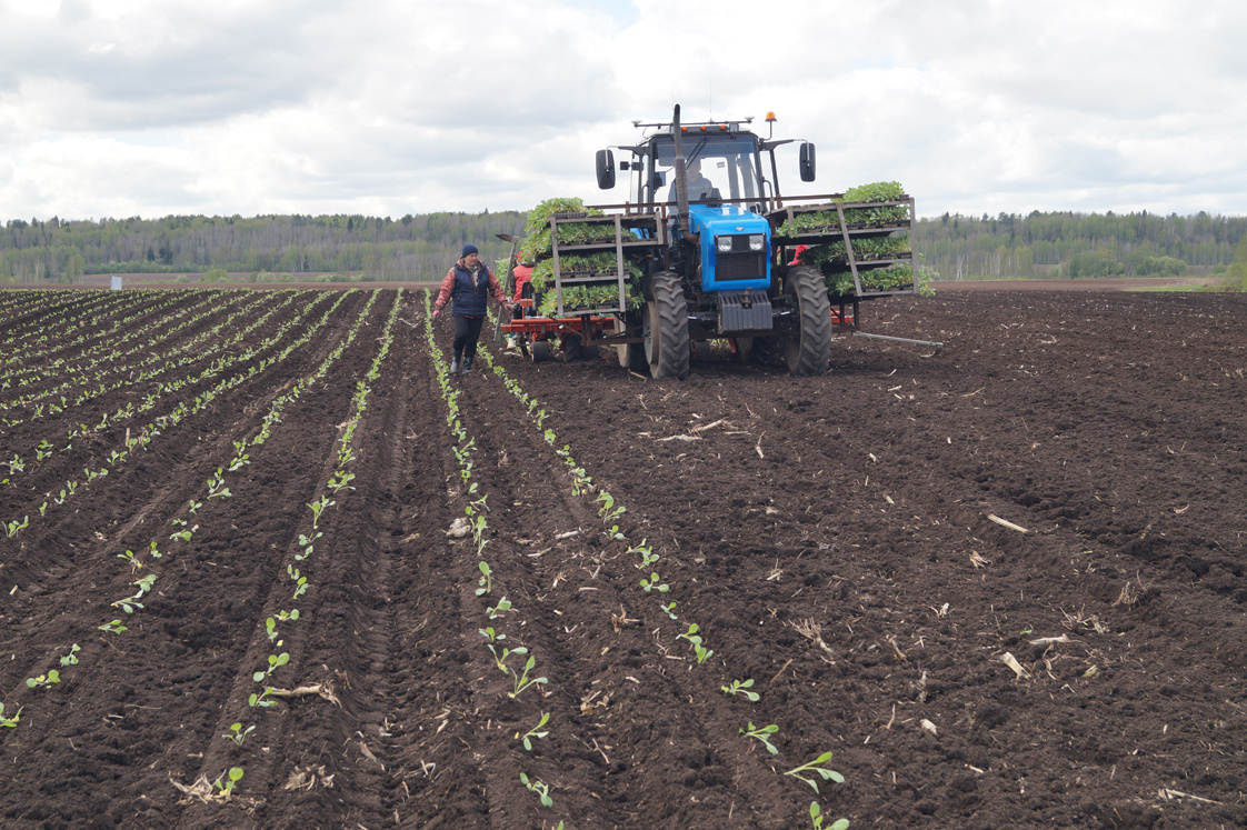 На огромном поле площадью почти 100 гектаров близ Усть-Турки высаживают рассаду капусты 12 овощеводов и один тракторист с помощью умной машины. В фермерском хозяйстве Алмаза Хавыева в селе Усть-Турка во вторник, 13 мая, начали сажать капусту. Здесь уже много лет выращивают капусту в промышленных масштабах, опыт колоссальный. Любые погодные условия не удивляют. Их просто учитывают. И делают всё возможное для получения хорошего урожая. - Нынешней весной рано потеплело, это было хорошо для выращивания рассады, - говорит Алмаз Альбертович. - Но потом пошли дожди, похолодало, выпал снег. В полях сыро. Сложно началась посевная. Используем каждый погожий день. Пятый день высаживают капусту в открытый грунт. Примерно месяц нужен на то, что бы высадить всё, что запланировано. Лишь иностранка - пекинская капуста - не спешит: её время роста - с середины июля до сентября, созревает за 45 дней. Корреспонденту «Искры» удалось понаблюдать, как осваивает подготовленное с осени поле обычная белокочанна