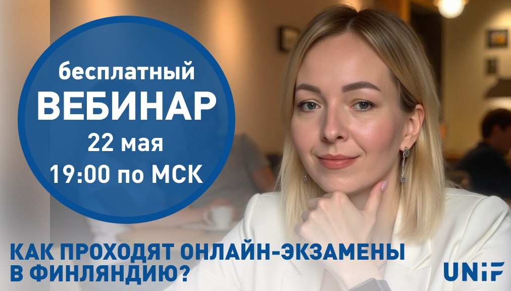 📍 В четверг, 22 мая, состоится бесплатный вебинар UNiF🇫🇮 «Как проходят онлайн экзамены в Финляндию