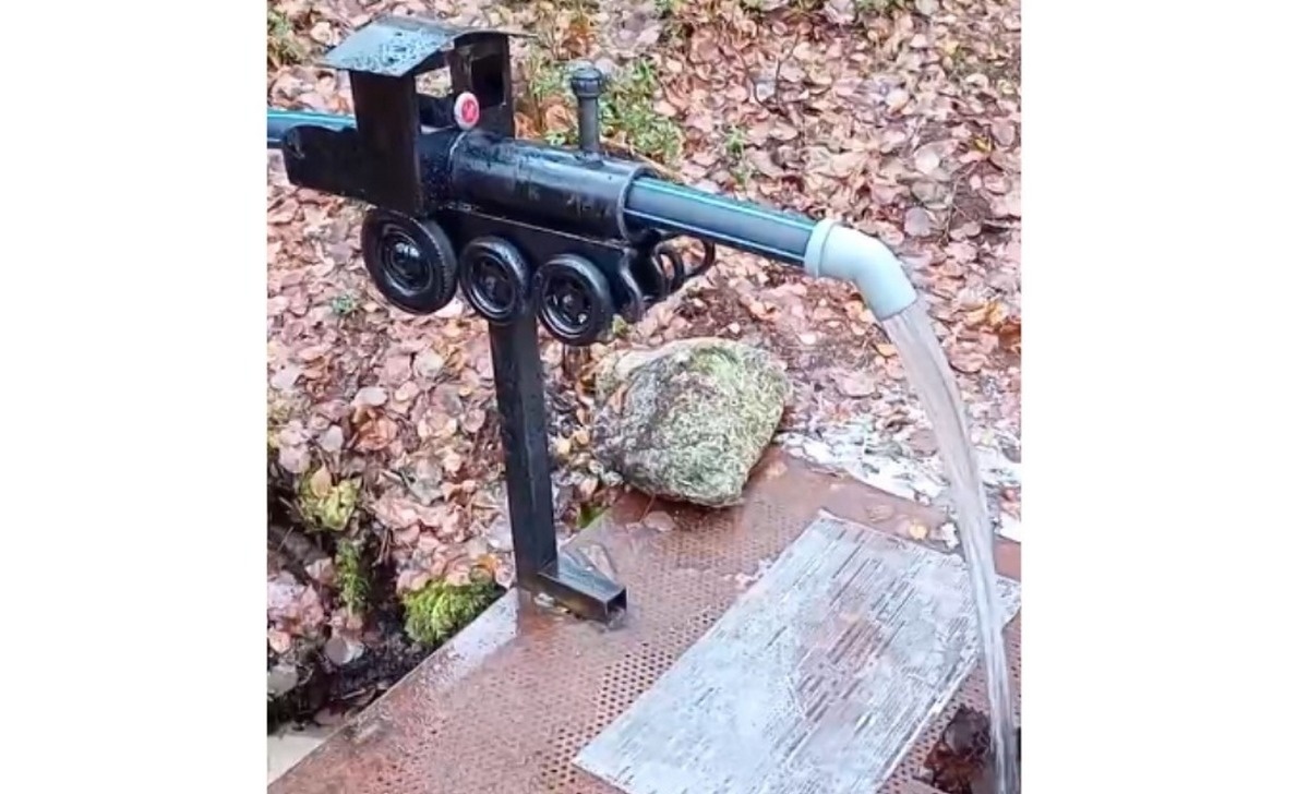 Осенью прошлого года бригада работников Октябрьской железной дороги обустроила этот источник, украсив его оригинальной фигуркой.