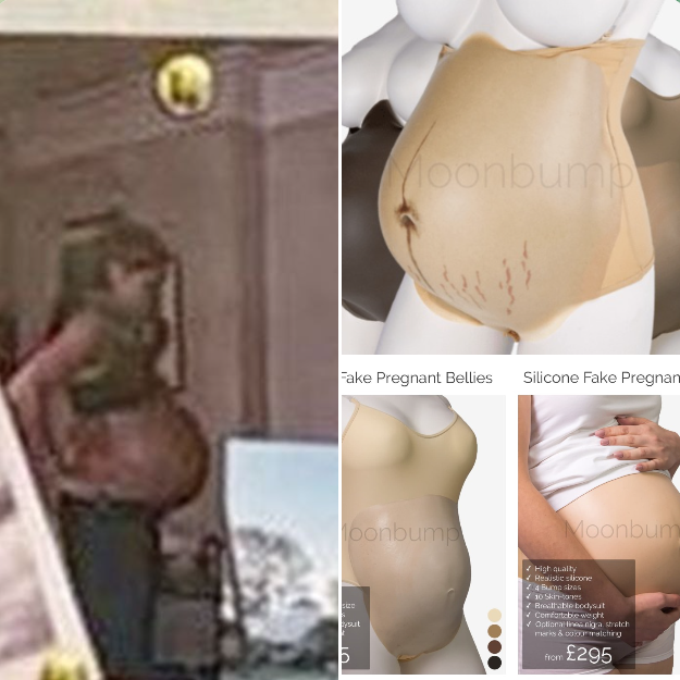Почему-то, чем упорнее Меган Маркл демонстрирует свою "беременность"\"беременности", тем меньше ей верят. В ответ на фото с голым беременным животом на "мудборде" в честь седьмой годовщины свадьбы, комментаторы пишут, что рука герцогини на снимке не до конца прикрывает место, где фальшивый живот стыкуется с кожей (и как они это разглядели на фото столь низкого качества?), а также приводят примеры таких вот "поддельных" животиков - это не что-то уникальное. Кстати, не так уж "moonbump`ы" дОроги, изготавливаются из силикона или пенопласта, выглядят вполне реалистично... Пользователи сети пишут об этом фото Меган Маркл с голым беременным животом: - А кто сделал эту фотографию? И она намеренно распечатала эту фотографию? Если вы собираетесь сделать фотосессию или просто распечатать фотографию своего беременного живота, вы бы выбрали ту, где лучше освещение, приятнее обстановка и реальный момент. Похоже, кто-то (кто это вообще был?) сделал это без ее ведома. Так зачем же она распечатала