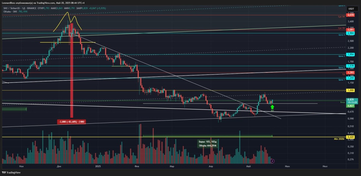 #SNX 💵Легкие иксы💵 ⚠️Мощно слили, никакого скама нет, проект живой, вытряхнули идеально! Я уверен в росте, достаточно легкий профит х2-х3, ожидание 1-2 месяца в зависимости от аппетита!! P.s. кому страшно и сомнения: делите позу 50/50, оставьте 50% на случай снижения, это если вы собираетесь брать инвест без стопа. Но, да в текущей ситуации используя стоп, соотношение риска 1/10, максимум 1/30. Думайте, анализируйте и принимайте Smart решения!!!