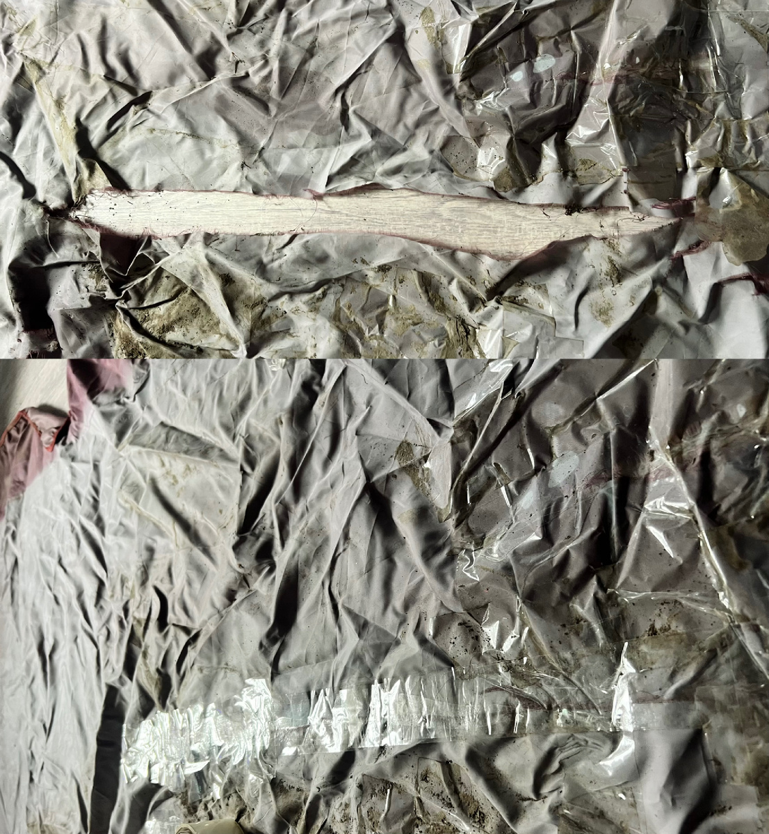 Привет, дачники! 🌞 В Краснодаре уже вовсю шпарит солнце, и я решила что пора доставать навес для качелей, нооо… за два года использования при экстремально высоких температурах юга, из красного он превратился в белый, а ткань стала рваться от небольшого усилия. Я долго решала, из чего буду делать новый навес. Куплю ткань оксфорд? Уже опоздала, навес нужен сейчас, а доставку пока дождешься. Сделать из старого пододеяльника и натянуть на опоры? Неплохая идея, но мне стало жалко красивые пододеяльники, которые за сезон точно бы превратились в труху? Еще был вариант вечного навеса из профнастила или поликарбоната, но про профнастил будет сильно нагреваться, да и небезопасно это, а за поликарбонатом надо куда-то специально ехать. Поэтому я нашла свой простой способ без затрат, и у меня получилось починить навес практически бесплатно! Звучит заманчиво? 📌Что нужно? (Скорее всего, всё это уже есть у вас) ✔ Скотч (я клеила прозрачным скотчем вдоль и поперек каждую рваность) ✔ Плотная плё