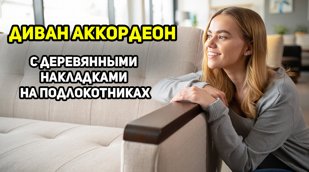Диван аккордеон с МДФ накладками на подлокотниках — это не