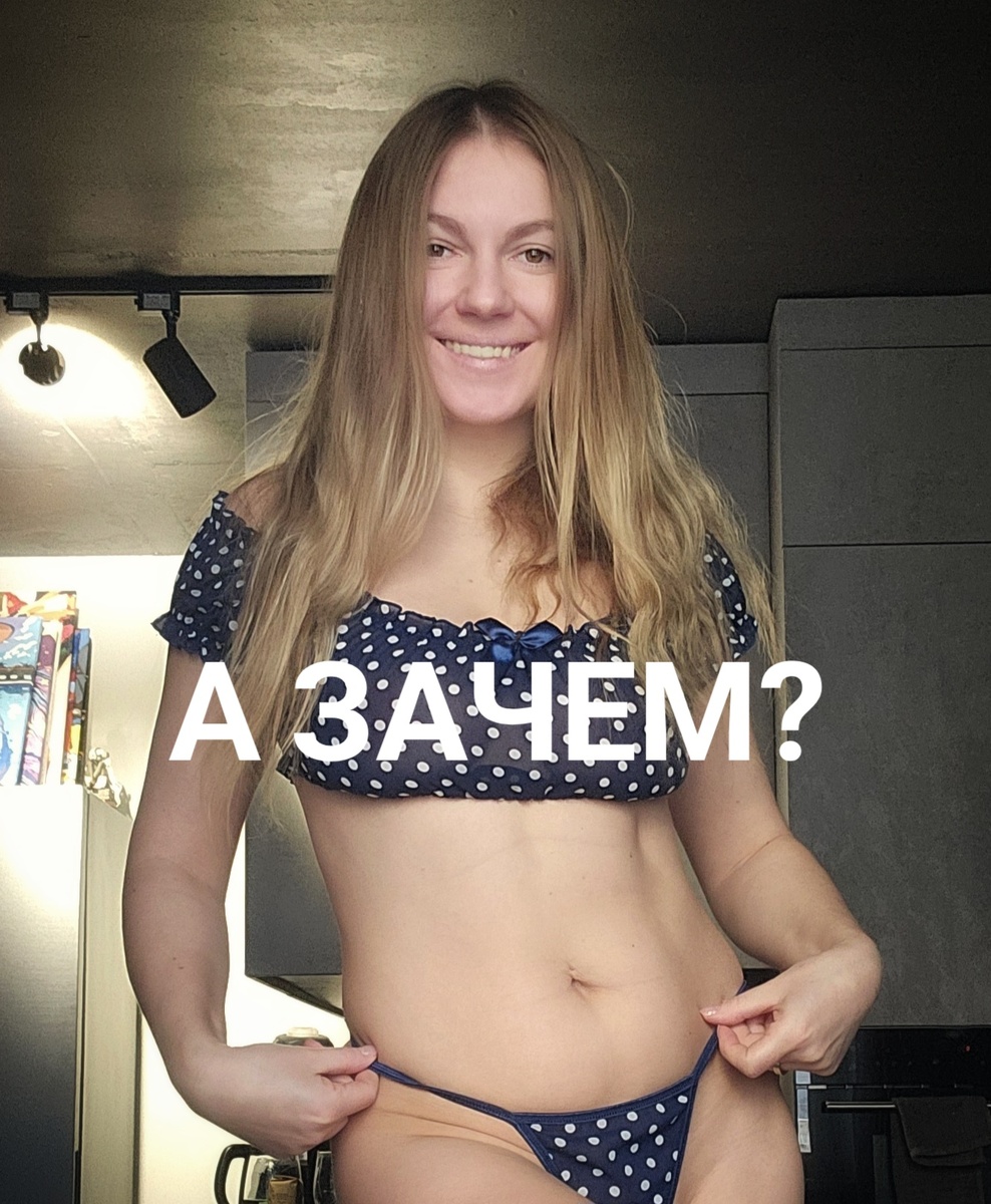 Ну и опять к вопросу о мотивации - если не понимаешь, зачем ТЕБЕ лично это нужно, да фиг ты будешь это делать на постоянной основе и долго. Вот про похудение, будь оно неладно, но таково желание многих женщин, ну и мое в том числе фоновое такое желание) Когда я думаю, про ЗАЧЕМ мне худеть, первая, наверное, мысль - ну я же себя позиционирую как фитнес-коуч, значит, должна соответственно выглядеть. Ладно, в соцсетях можно прятать свою натуральную фигуру, а вот сейчас же лето, пойду на пляж, а там много знакомых и они такие - нуууу знаете...как-то не похоже, что вы фитнесом занимаетесь. Это мне как-то сказали - видно, что в зал не ходишь и рожавшая. И таааак обидно стало. В смысле, блин, видно, что я в зал не хожу?) А зачем я туда вообще хожу, если этого не видно другим людям? Вот как будто "надо соответствовать". А когда в цели главенствуют слова "надо и должна", это повод задуматься- а хочешь-то ты чего? Даже так. А ТЫ что ХОЧЕШЬ? Мешают ли мне пара "лишних" кг заниматься тем