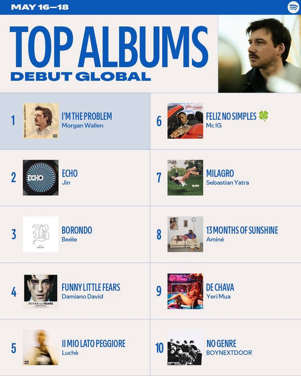 🍊 Альбом "Echo" дебютирует на 2-м месте в глобальном чарте лучших дебютных альбомов Spotify и на 3-м месте в американском чарте лучших