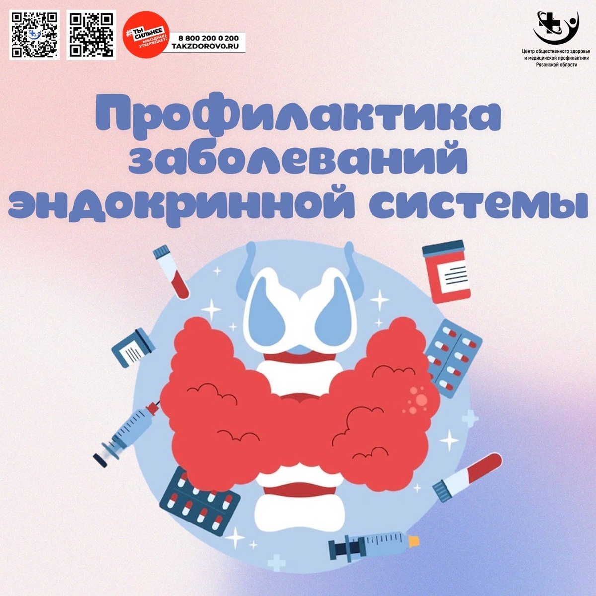 Неделя профилактики эндокринных заболеваний 🦋 С 19 по 25 мая в рамках Всемирного дня щитовидной железы (25 мая) уделим внимание здоровью нашей эндокринной системы! Как сохранить здоровье? 🔹 Правильное питание: Используйте йодированную соль Включите в рацион морепродукты, орехи, зелень Ограничьте сахар и фастфуд 🔹 Физическая активность: 30 минут движения ежедневно Прогулки на свежем воздухе Йога или плавание для снижения стресса 🔹 Регулярные обследования: Контроль уровня сахара в крови УЗИ щитовидной железы Анализ на основные гормоны 🔹 Здоровые привычки: Полноценный сон 7-8 часов Управление стрессом Отказ от вредных привычек Помните: многие эндокринные нарушения на ранних стадиях протекают бессимптомно. Регулярная профилактика - залог вашего здоровья! #Эндокринология #Профилактика #ЗдоровыйОбразЖизни #здоровоебудущее#здоровоебудущее62#ЗдороваяРязань