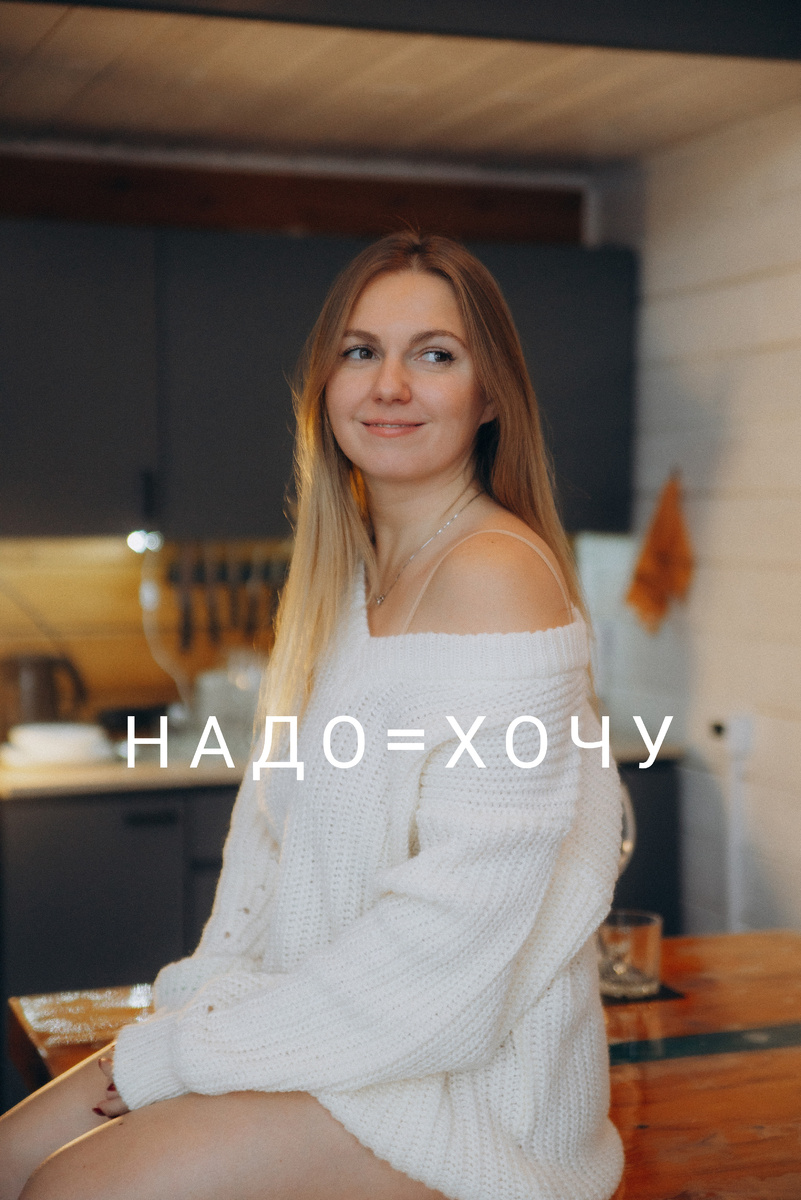 Идеальная формула надо=хочу) когда только "надо", будет постоянное заставление себя, когда только "хочу" - будут действия только во время вдохновения. Так что да. Оптимально задавать себе 2 вопроса - а насколько мне НАДО то, что я хочу? И насколько я ХОЧУ то, что мне надо? Ну и, согласитесь, формулировка "Я ХОЧУ похудеть" звучит куда приятнее, чем "Я ДОЛЖНА похудеть". Вроде мелочи, а на самом деле очень важно, ЧТО мы говорим. Хочу похудеть - цель, желание. Позитивная формулировка. А для этого мне НУЖНО совершать следующие действия: 1,2,3. Потому что хоть правильно и красиво заформулируйся, результата без действий не будет) Но и этого мало) Мы все знаем, какие действия нужно совершать, чтобы похудеть (плюс-минус) : соблюдать дефицит калорий, двигаться, заниматься силовыми тренировками и есть норму белка, высыпаться, проверить анализы, снижать уровень стресса,... Более упрощённо обычно звучит как: Меньше жрать и больше двигаться Но даже эта формула работает не для всех. Хотя
