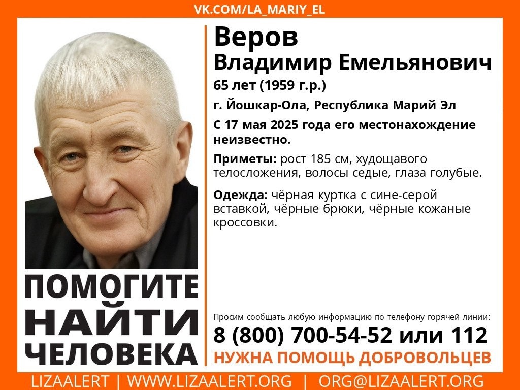 ‼️Местонахождение 65-летнего Владимира Емельяновича Верова неизвестно с 17 мая