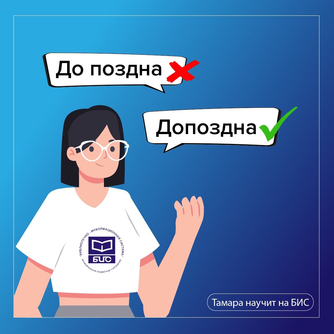 — Скоро лето, белые ночи, а значит будем гулять допоздна. А ещё учиться правильно писать, — говорит Тамара. ✍ Слово «допоздна» — обстоятельство времени, отвечает на вопрос «до каких пор?» При этом пишется оно исключительно слитно. Ошибочное желание написать раздельно «до поздна» возникает по аналогии с другими выражениями: до вечера, до встречи, до четверга. ☝ Но в отличие от перечисленных словосочетаний, которые состоят из предлога «до» и существительного, слово «допоздна» является наречием. Проверить себя легко: существительные «вечер», «встреча» и «четверг» есть в русском языке, а вот слова «поздна» с ударением на последний слог в нем не найти. ✅ Летом гуляем допоздна. #библиотекинижневартовска #mubisnv_тамара #русскийязык #допоздна #какправильно