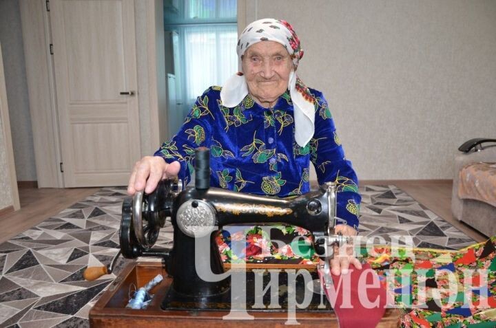 Редко бывают дни, когда швейная машинка 99-летней Зайнаб эби Вильдановой перестает строчить. Наша землячка, пережившая немало испытаний временем - замечательный человек, который каждую минуту своей жизни посвящает созиданию прекрасного и полезному делу. Руки бабушки, которой в ноябре исполняется 99 лет, до сих пор не могут обходиться без дела: она стегает одеяла, шьет покрывала, вяжет носки. Во время нашего визита Зайнаб эби сидела за швейной машиной, сшивала треугольные лоскутки ткани для очередного покрывала. - Мама любит дарить свои работы детям, внукам и родственникам. Когда в какой-нибудь семье в селе рождается малыш, она дарит стеганое из лоскутков одеяльце, - рассказала невестка Рамзия. – Говорит, что это будет памятью о ней. Покрывалом, сшитым ею недавно, мы пользуемся сами. Одеяла из лоскутков разноцветных тканей получаются очень красивыми. Ткань для работы они покупают. Раньше Зайнаб эби стегала матрацы и одеяла из овечьей шерсти, позже для этих целей начала использовать си