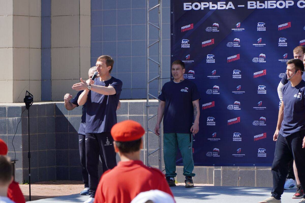 Представил почётных гостей и вместе с ними стал тренером для самарской молодёжи, которая пришла сегодня на «Зарядку с чемпионами», президент Федерации спортивной борьбы, депутат Самарской губернской Думы, координатор партпроекта «Выбор сильных» в Самарской области Александр Живайкин.