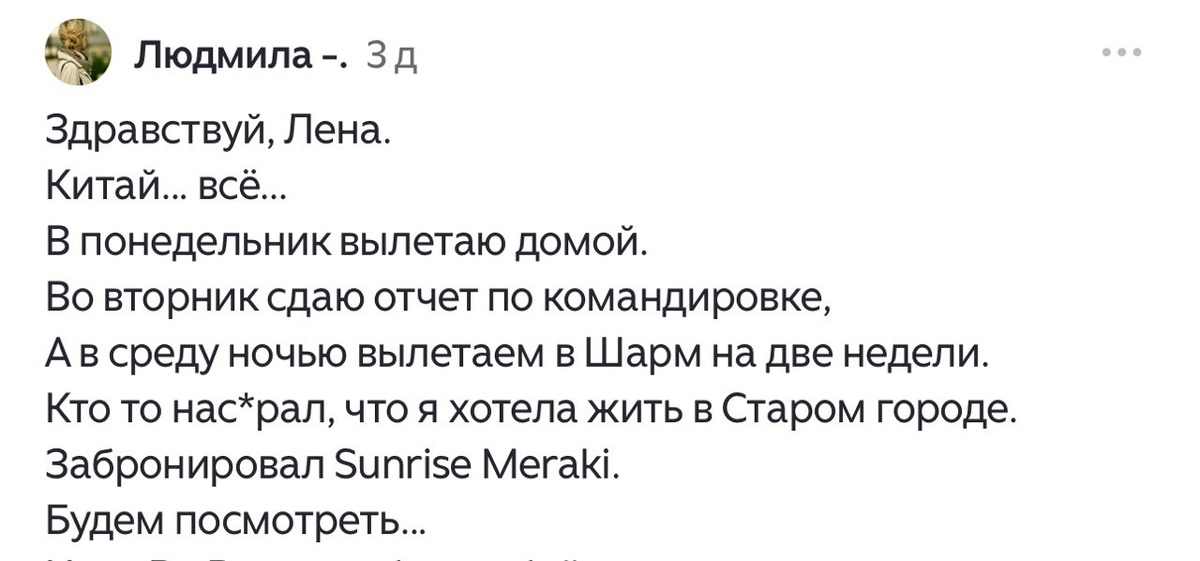 "А в среду ночью вылетаем в Шарм на 2 недели, забронировали Sunrise Meraki". Посмотрим отель, в который летит отдыхать Людмила