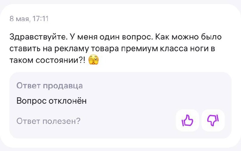 Ну и в чем я не права?! 😅 Надо не вопросы отклонять, а менять фото в карточке товара ящитаю
