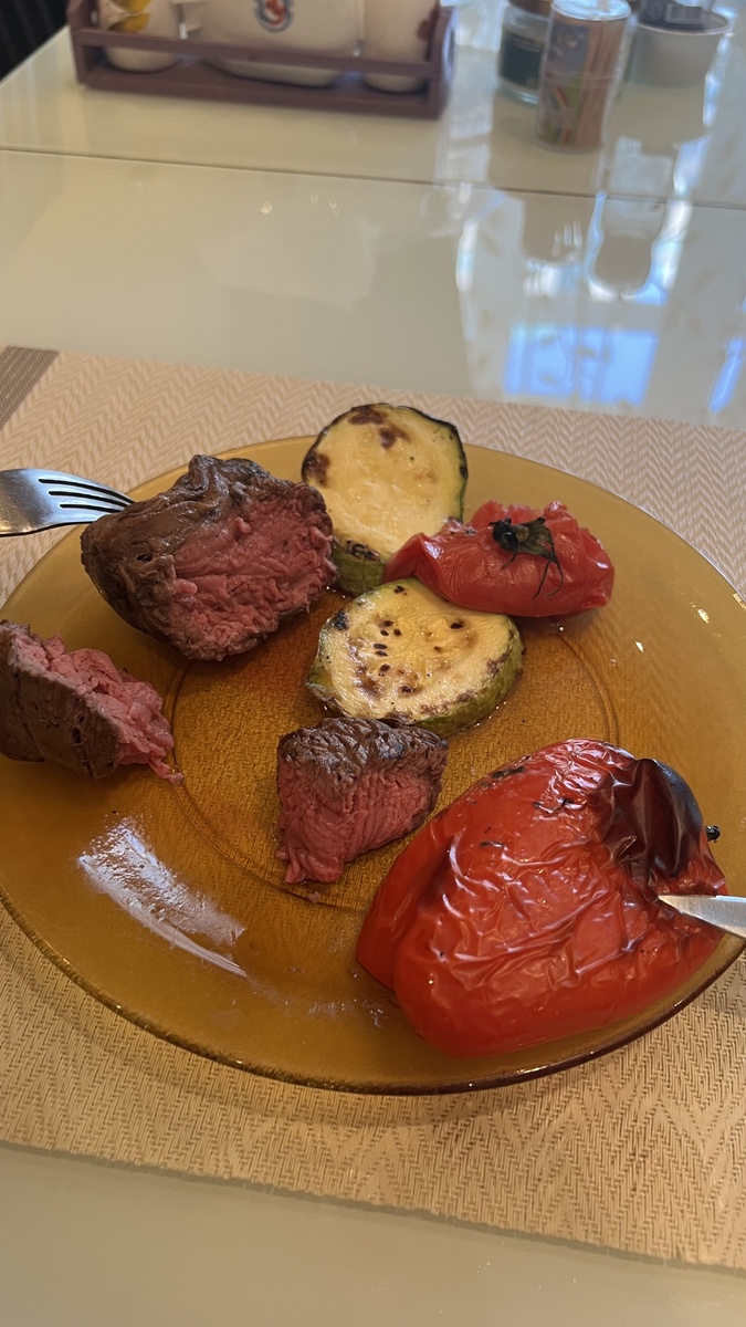 🔥 Хотите научиться жарить стейк как шеф-повар? Сочная говяжья вырезка с дымком от гриля, румяной корочкой и нежными овощами – это ресторанное качество у вас дома! В этой статье вы узнаете: ✔ Как выбрать идеальный кусок мяса ✔ Все степени прожарки – какая подойдет именно вам ✔ Пошаговый рецепт стейка средней прожарки (Medium) ✔ Какие овощи-гриль идеально дополнят блюдо --- Выбираем мясо: какая вырезка лучше для стейка? Для идеального стейка подходят: 🔹 Филе-миньон – самый нежный и дорогой вариант 🔹 Тибоун (на кости) – сочный и ароматный 🔹 Рибай – с мраморными прожилками, очень вкусный Совет: Берите куски толщиной 2,5-4 см – так мясо прожарится равномерно. --- Важно: Для говяжьей вырезки лучше Medium Rare или Medium – так мясо останется сочным. --- Рецепт стейка Medium на гриле с овощами Ингредиенты (на 2 порции): ✔ 2 стейка из говяжьей вырезки (по 250-300 г) ✔ 2 ст. л. оливкового масла ✔ Соль, перец, розмарин – по вкусу ✔ Овощи