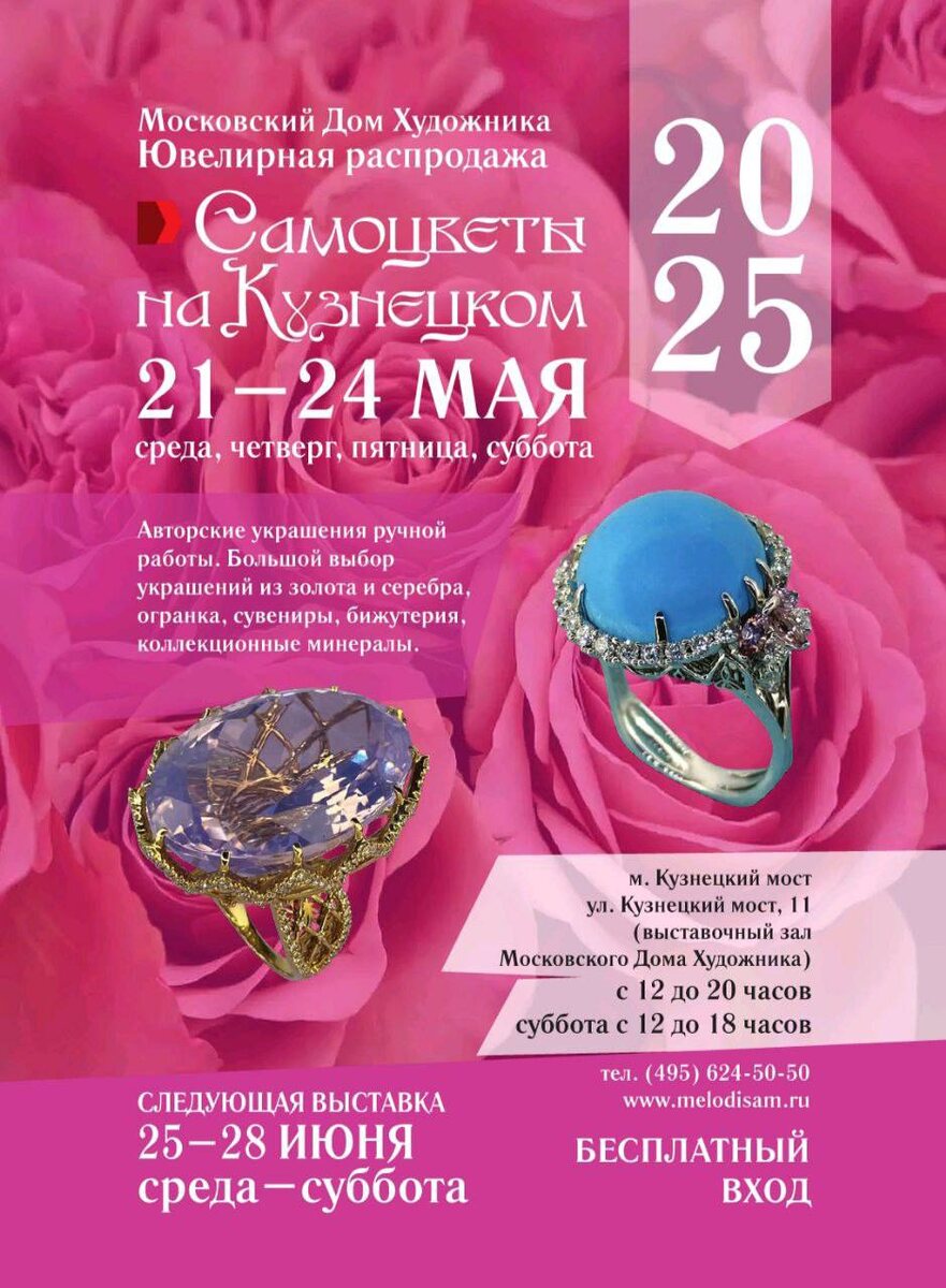 Спешим пригласить вас на ювелирную выставку «Самоцветы на Кузнецком», которая пройдет с 21 по 24 мая в Московском Доме Художника!