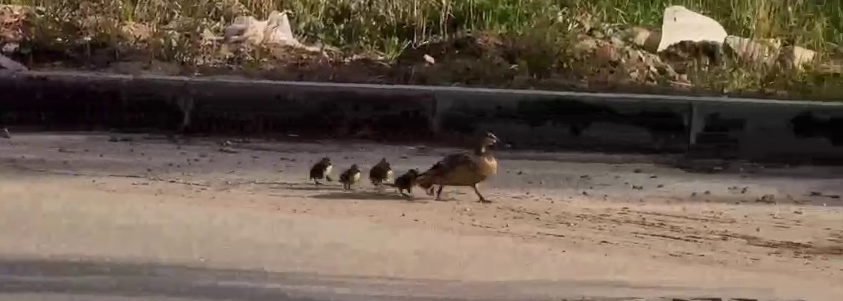 На видео птицы неторопливо прогуливались по улице. Малыши устроили настоящее спортивное состязание — утята перепрыгивали высокий бордюр. Не у всех получалось с первого раза, однако на помощь тут же приходили маленькие братья и сестры. За кадром птенчиков поддерживали очевидцы.