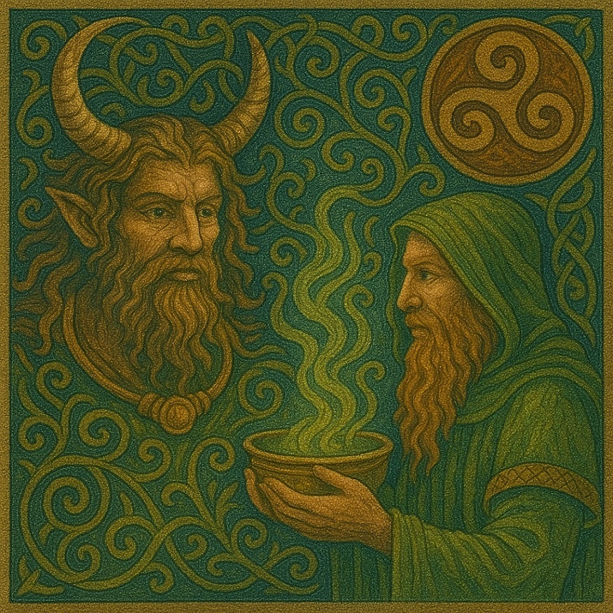 В гобеленах его легко опознать: между рогами пляшут завитки, будто змеи сплелись в солярное колесо. Рога — это антенны: ими бог ловит шум подземных сокровищ и шёпот зверей. Секретный штрих ткачихи — вплести одну нить из конского волоса, чтобы изображение «почуяло» лошадиную силу и встрепенулось.