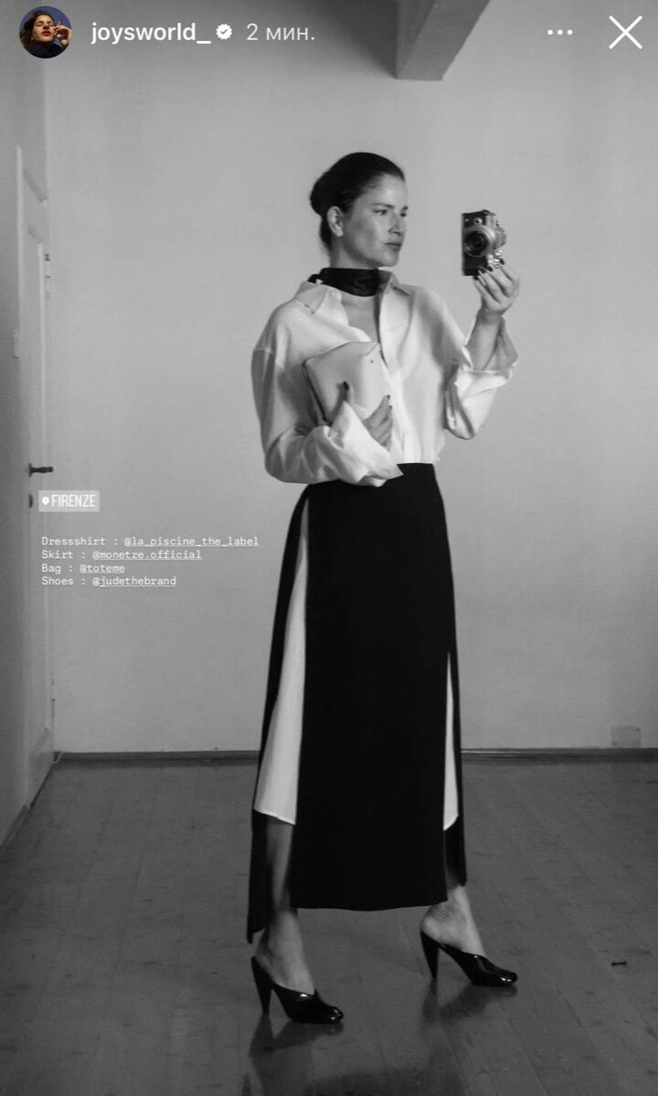 Когда-то сохранила себе этот образ: рубашка-платье и юбка с фронтальными разрезами до пояса. Даже хотелось такую пошить У этой юбки Marem слегка похожий принцип, но её можно и без вспомогательных элементов красиво и безопасно стилизовать, нравится А-силуэт и то, что она уже со скидкой 🎢