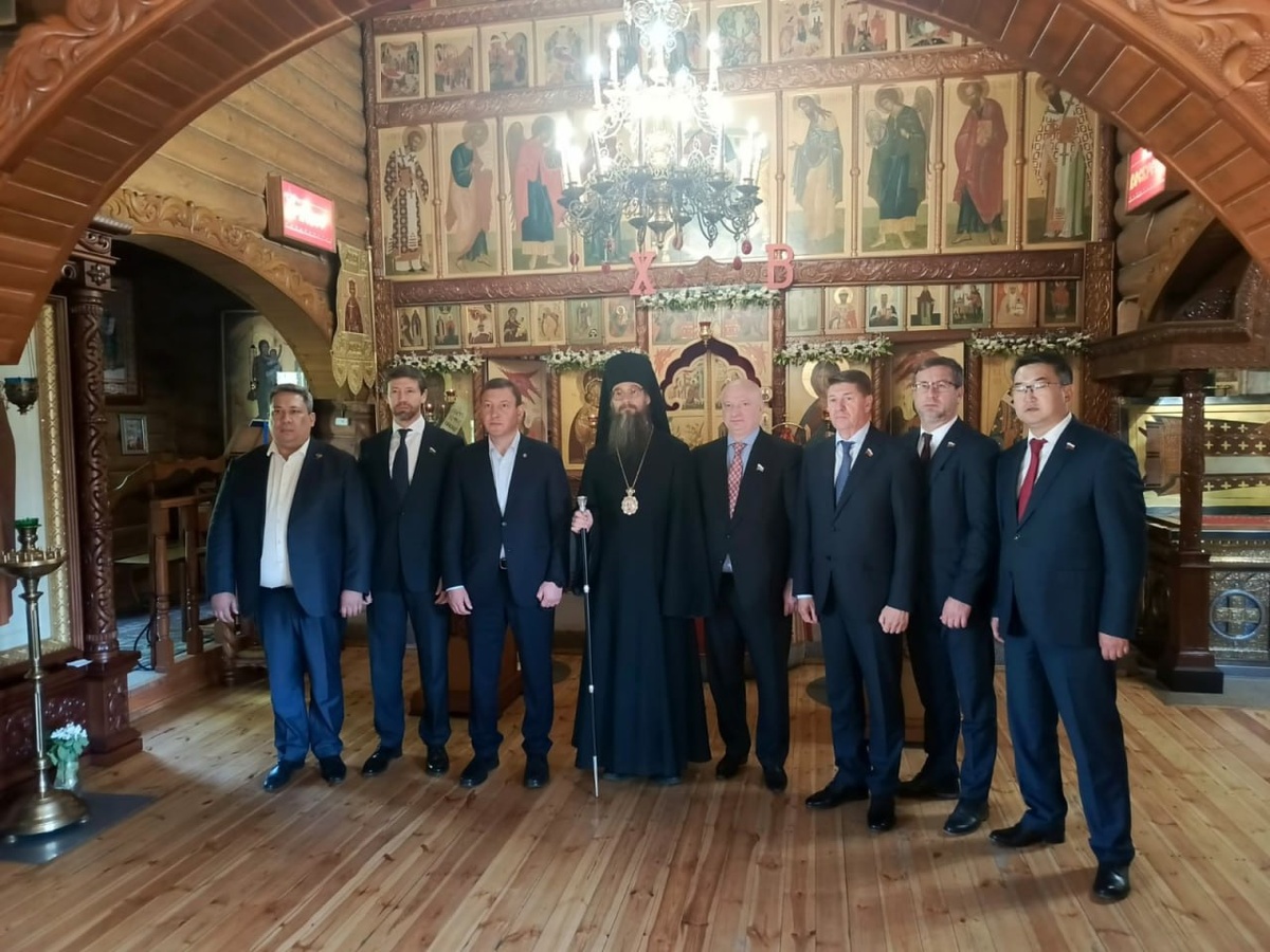 15 мая 2025 года, Председатель Комитета Совета Федерации по конституционному законодательству и государственному строительству Андрей Александрович Клишас и Председатель Комитета Совета Федерации по федеративному устройству, региональной политике, местному самоуправлению и делам Севера Андрей Анатольевич Шевченко, совместно с Главой Республики Алтай Андреем Анатольевичем Турчаком и сопровождающими их лицами посетили кафедральный храм во имя преподобного Макария Просветителя Алтайского в г. Горно-Алтайске, где поклонились мощам святителя Макария, митрополита Московского, Алтайского. Высоких гостей на территории храма встречал епископ Горно-Алтайский и Чемальский Макарий, который рассказал им об истории строительства, святынях и достопримечательностях храма, а также преподнес иконы просветителей Алтая. Инф: Горно-Алтайская епархия