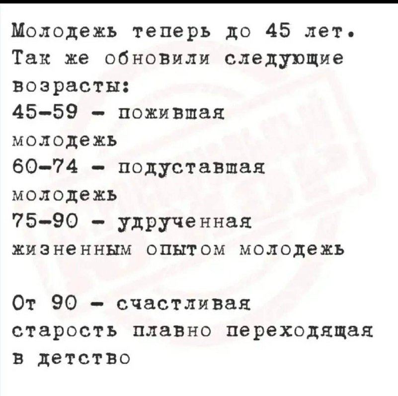 "ВОЗ изменила возрастную классификацию: теперь человек до 45 лет считается молодым" 😁