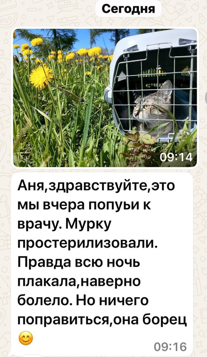 Доброе утро Это Мурочка, которую я тоже лечила от панлейки дома и она выздоровела ( к сожалению не всех удается спасти, но Мура тоже боец и выжила) У нее была стерилизация! Люба сделала замечательную фотографию по дороге к врачу ! #приветЯдома от Муры