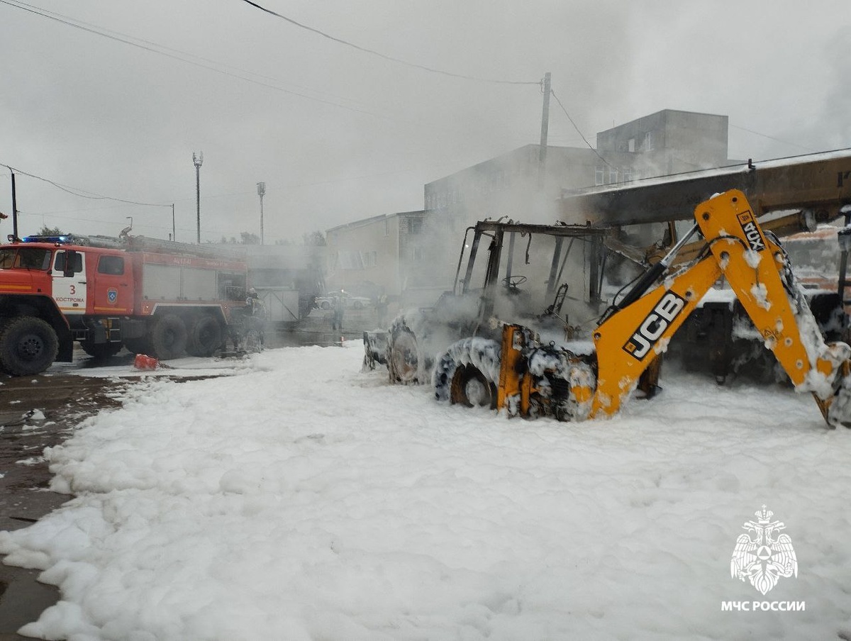 ⭕В 04:49 20 мая поступило сообщение о возгорании экскаватора-погрузчика на улице Солониковской в Костроме. В 05:51 огнеборцы МЧС России полностью ликвидировали пожар. В результате происшествия огнём уничтожены резинотехнические элементы задних колес, выгорели моторный отсек и кабина по всей площади экскаватора-погрузчика. Причина и обстоятельства устанавливается.