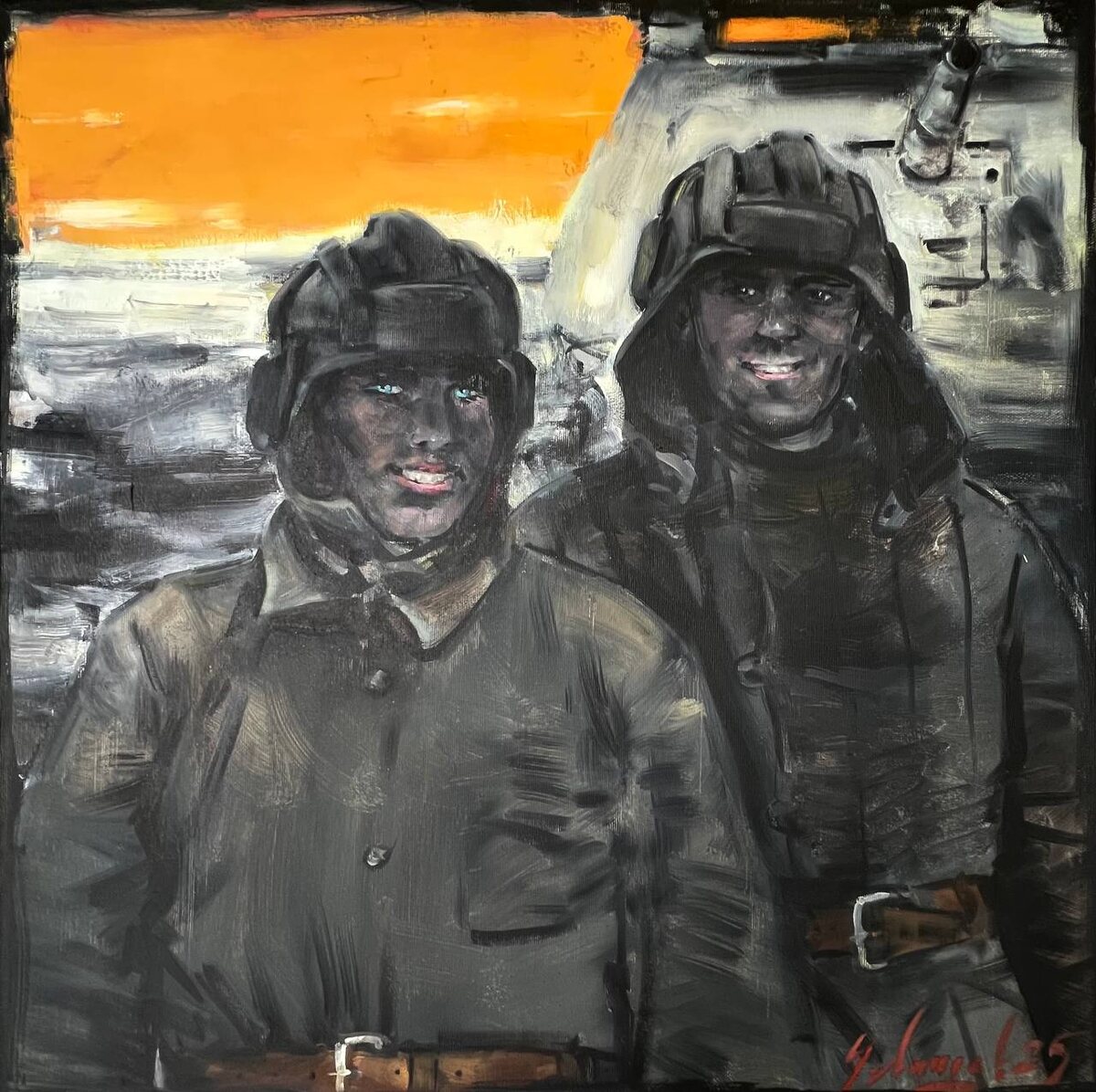 Два танкиста серия Цвет Победы 80х80 холст/масло 2025 ••• Эту же тему внутренней силы воинов продолжает раскрывать картина «Два танкиста» — работа по сюжету, наиболее близкая к боевым действиям. В этом полотне Александру Чувашеву удается достичь почти тактильного воздействия — так точно художник передает здесь грязь на лицах героев. В то же время свет улыбок танкистов сразу делает их живыми. ••• Побывать на выставке «Цвет Победы» и снова прожить этот яркий отрезок нашей истории с новыми образами Александра Чувашева можно до 10 июня 2025. ••• Москва. Ходынский бульвар 20а, с 11:00 до 21:00 ежедневно. Выставка бесплатная, работы продаются. Вся контактная информация на сайте YOLKA.art