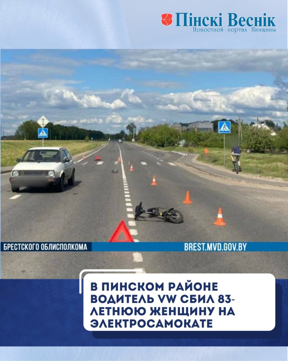 По предварительной информации, 24-летний местный житель, управляя автомобилем «Volkswagen», двигался по автодороге Р-8 «Лунинец-Пинск» в направлении города Пинска. На 51 километре указанной автодороги совершил наезд на 83-летнюю жительницу Пинского района, которая пересекала проезжую часть по нерегулируемому пешеходному переходу на электросамокате слева направо по ходу движения автомобиля. В результате ДТП последняя госпитализирована. Проводится проверка. @Пинский Вестник ЮТУБ | САЙТ| ИНСТ | ВК | ОК | ФЕ | Прислать новость