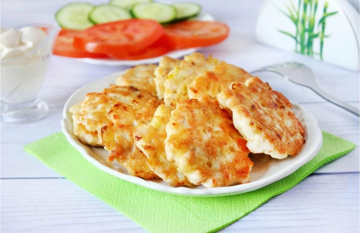 Ингредиенты: - Куриное филе — 500 г - Майонез — 2-3 ст. ложки - Крахмал — 2 ст. ложки - Чеснок — 2-3 зубчика - Приправы (черный перец, паприка, сушеные травы по вкусу) — по желанию - Соль — по вкусу - Яйцо — 1 шт. Приготовление: 1. Подготовка куриного филе: - Промойте куриное филе и обсушите. - Нарежьте филе на небольшие кусочки или порубите на куски средних размеров. - В полученную массу добавьте майонез, крахмал и яйцо. - Тщательно перемешайте до однородности. - Мелко измельчите и добавьте чеснок. - Посолите и приправьте по вкусу. - Перемешайте снова, чтобы специи равномерно распределились. 2. Желательно оставить мариноваться на 2-3 часа. 3. Формирование котлет: - Котлетки легко и просто выкладываются ложкой. 4. Запекание: - Будем запекать котлеты в аэрогриле при 180°C примерно 15 минут (можно запекать в духовке при 180°C 20 минут или же обжаривать на сковороде). Куриные котлетки, запечённые, как правило, считаются более полезными по сравнению