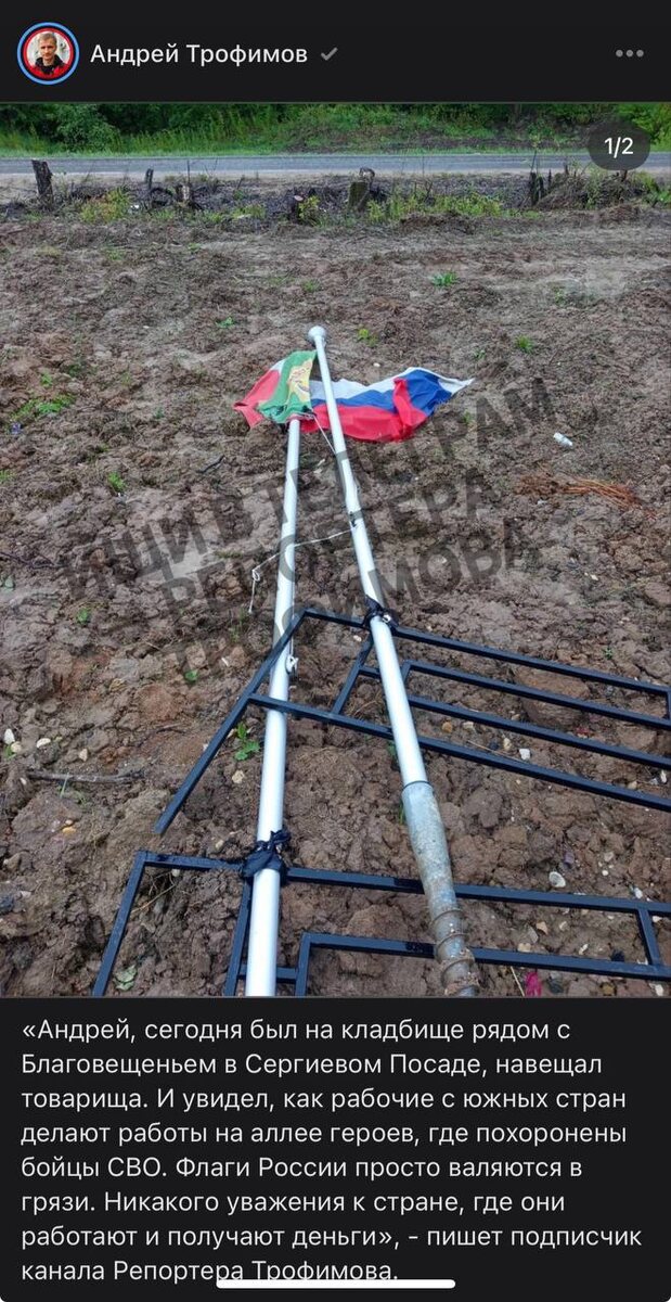 РЕАКЦИЯ: «Сделал не я, а стыдно за всех. Кто снял видео про флаги на кладбище? Хочу лично извиниться и объяснить ситуацию. Все исправлено. Это из-за ветра такое случилось. А тому человеку, кто на клеветал, Бог судья! И вчера ни кто не работал на кладбище, погода не позволяла. Так что он ЛГУН. Видео опубликуйте пожалуйста», - пишет подписчик канала Репортера Трофимова. Как я понимаю, рабочие занимались благоустройством могил для чего демонтировали ограды, но не сняли с них прикрепленные флаги. Возможно ветер и правда сам повалил демонтированные секции вместе с флагами в грязь, но если бы рабочие сняли флаги с ограды прежде, чем её разбирать - ничего такого бы не случилось. Подпишись на Трофимова Сообщить новость 👉 сюда. По рекламе 👉 сюда. 🤩