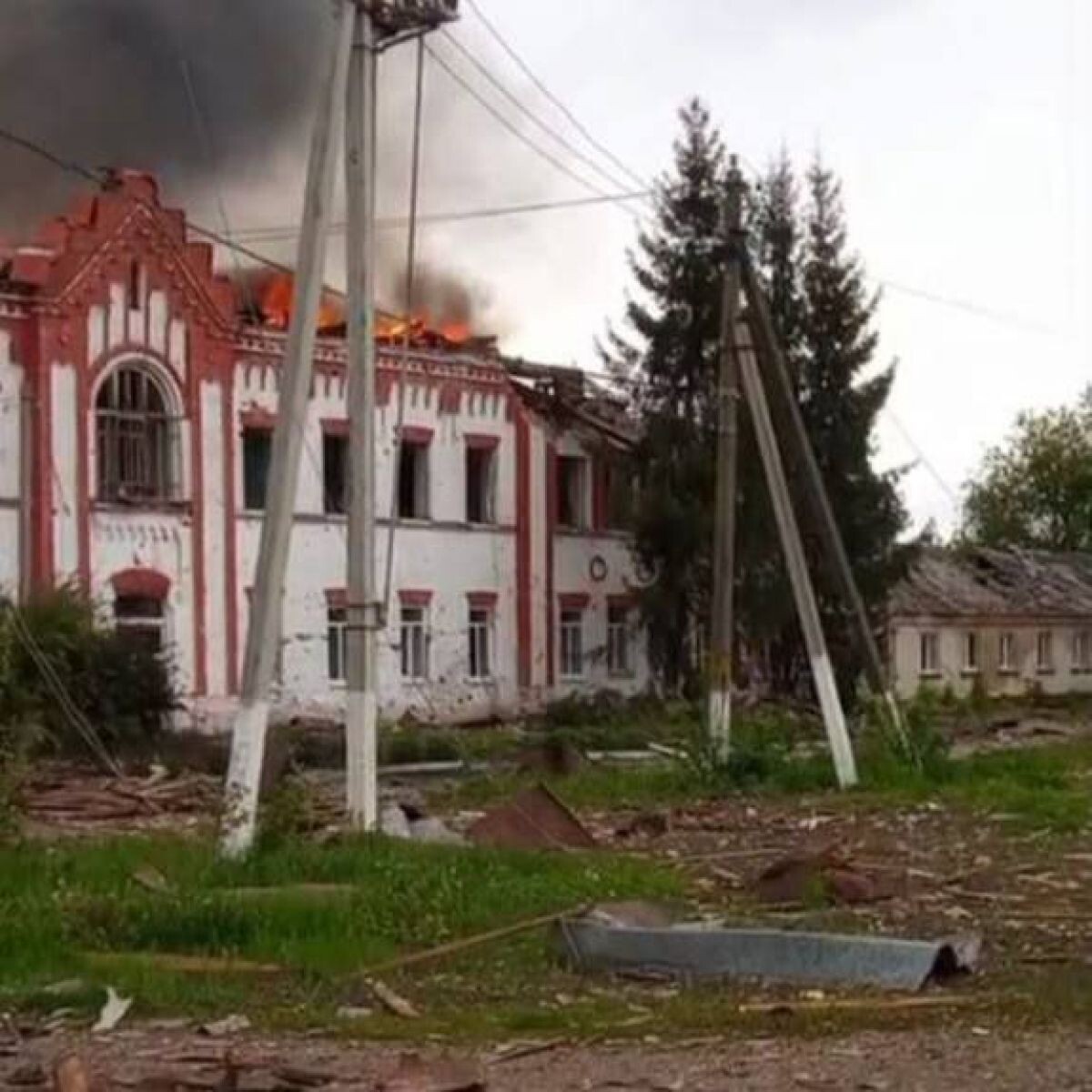 Предположительно, сначала по больнице попали 2 ракеты. На следующий день удар повторился. Часть постройки разрушена, выбиты окна, повреждены крыша и прилегающая территория. От разлета обломков могли пострадать близлежащие дома.