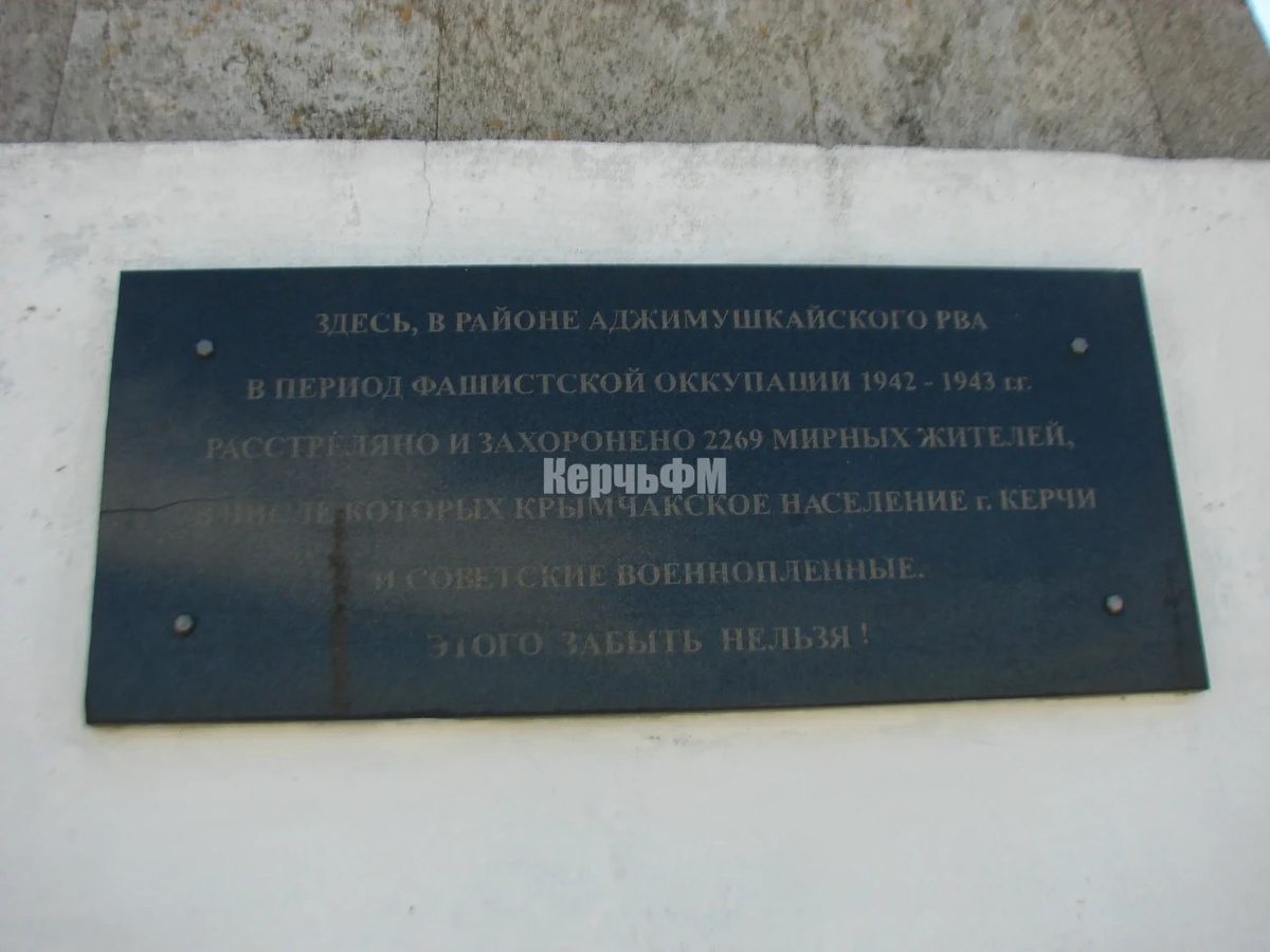 В Керчи отремонтируют памятник, установленный в районе Аджимушкайского рва Перед новым мемориальным комплексом, установленном недавно в Керчи, находится памятник погибшим от фашистов в годы ВОВ мирным местным жителям. Табличка на нем гласит: « Здесь в районе Аджимушкайского рва в 1942-1943 годах расстреляно и захоронено 2269 мирных жителей, в числе которых крымчакское население г. Керчи и советские военнопленные... подробнее Подписывайся на КерчьФМ.РФ @kerchfm