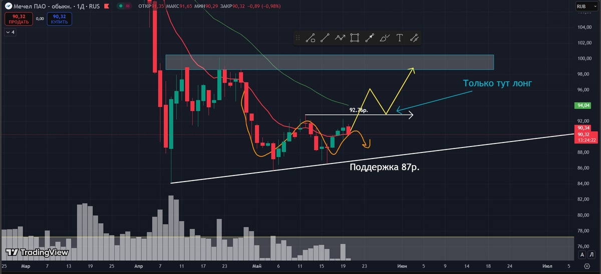 Акции Мечела от 20.05.2025. Как я буду торговать.