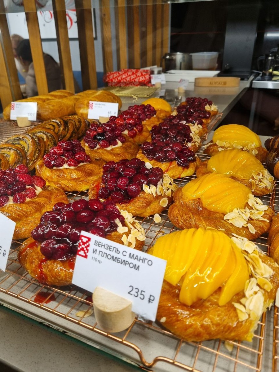 Когда прогулка по Крестовскому острову превращается в кулинарное приключение! Зашла случайно, чтобы попить кофе, но витрина пекарни «Коржов» на улице Рюхина, 10, просто не оставила шансов. Аппетитная, свежая выпечка, вкусные напитки и разнообразный выбор горячих блюд и салатов — всё это вместе взятое заставило меня попробовать всё! Мои любимые: - Латте за 230 рублей — идеальный напиток для освежения. - Ролл с креветками за 380 рублей — настоящий кулинарный шедевр. - Вензель с манго за 235 рублей — сладкий сюрприз для души. Атмосфера и обслуживание: Интерьер современный и стильный, персонал доброжелательный и вежливый. Это место, где хочется возвращаться снова и снова! Совет всем: Если вы ищете уютное место с вкусной едой и приятной атмосферой, то пекарня «Коржов» — ваш выбор! Обязательно посетите и убедитесь сами!