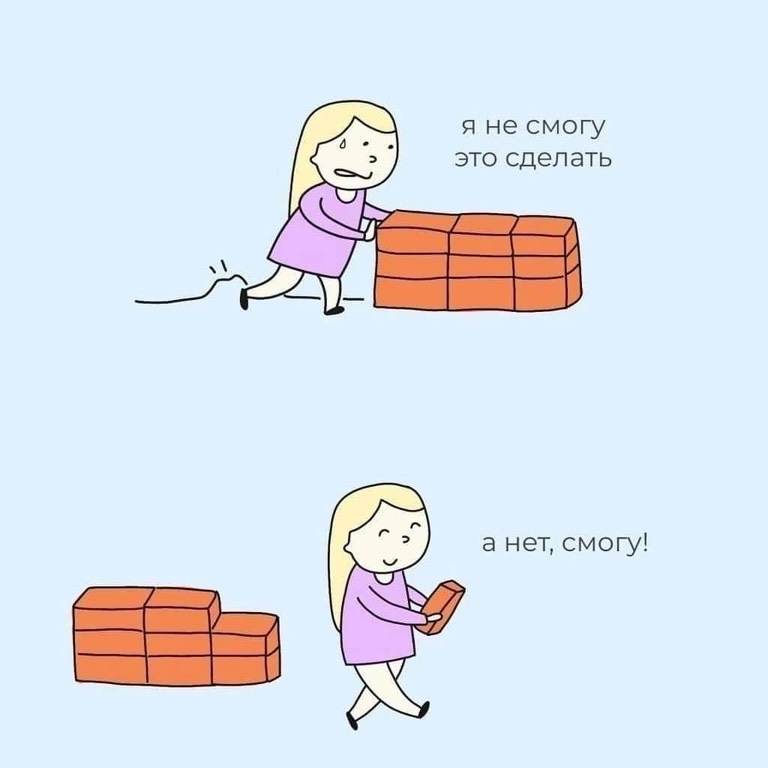 4. Разделите одну большую задачу на несколько маленьких шагов. Большие цели могут казаться слишком сложными и вызывать чувство бессилия. Поэтому разбейте их на мелкие, достижимые шаги, и вы увидите, как растет прогресс.