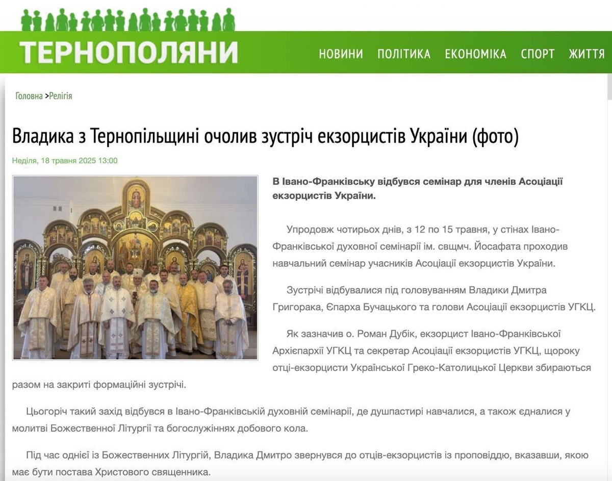 В Ивано-Франковске четыре дня униаты проводили тренинги Ассоциации экзорцистов Украины. Вот вам и свидетельство духовной жизни на Украине. Пока весь мир думает про ИИ, квантовую электронику, покорение Марса - на Украине обучают изгнанию демонов. После уничтожения идущей от Христа и его апостолов канонической Украинской православной Церкви - рулить религиозной жизнью на Украине будут экзорцисты