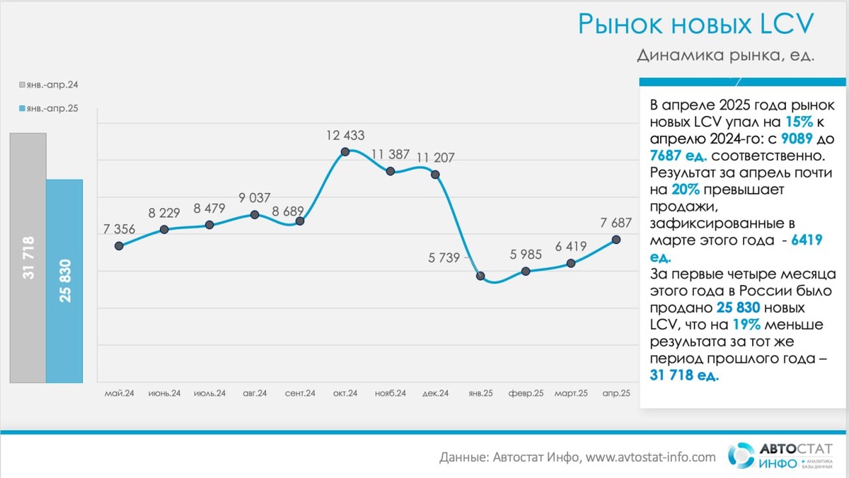 Рынок новых LCV в апреле 2025 года: восходящая динамика, но с просевшей базой